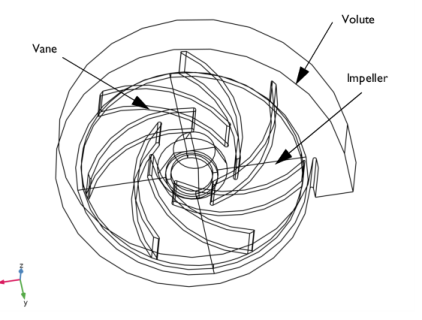 مدل فعلی نشان دهنده یک پمپ گریز از مرکز نیمه باز با هفت پره است. برای پروانه نیمه باز، پره ها با یک پوشش در یک طرف پروانه به توپی متصل می شوند. پیچک شکل مارپیچی دارد و شعاع بیرونی پروانه 10 سانتی متر است. اندازه پمپ مدل شده برای کاربردهای خودرویی معمولی است. هندسه در این کار بسیار پارامتری است و به تغییرات ساده هندسه اجازه می دهد تا در صورت نیاز پیکربندی های مختلف پمپ گریز از مرکز را مطالعه کند.