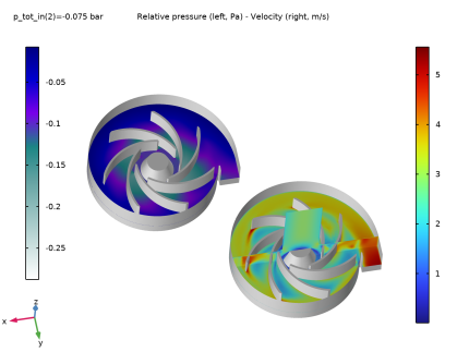 این مدل نشان می دهد که چگونه می توان شبیه سازی ماشین های دوار را با رویکرد روتور منجمد برای پمپ های گریز از مرکز تنظیم کرد. معادلات حاکم بر فیزیک معادلات ناویر-استوکس و معادله تداوم هستند.