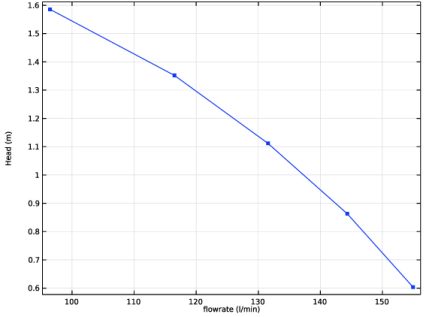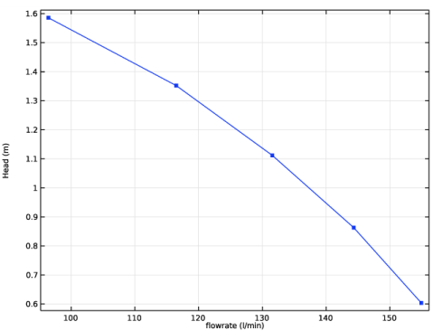 این مشکل برای مقادیر مختلف فشار کل، p tot ، در ورودی حل می شود تا منحنی پمپ برای هندسه خاص در نظر گرفته شده در اینجا به دست آید.