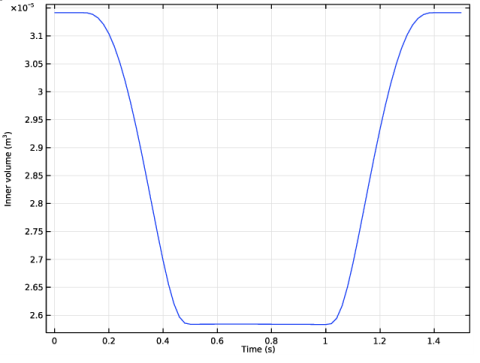 شکل 3 حجم داخلی لوله را بر حسب زمان نشان می دهد. در t = 0.3 ثانیه، رول فاز درگیری خود را آغاز کرده است و فشار خود را بر روی لوله افزایش می دهد. از آنجایی که فضای کمتر و کمتری برای سیال باقی می ماند، از طریق ورودی و خروجی از لوله خارج می شود. در t = 0.5 ثانیه، رول برای مدتی کاملاً درگیر شده است. همانطور که در طول لوله به سمت بالا حرکت می کند، سیال هم در ورودی و هم در خروجی حرکت می کند. اینجاست که بیشتر جریان خالص در جهت ورودی به خروجی ایجاد می شود. در نهایت، در t = 1.3 s، فرآیند تعامل معکوس می شود و رول در حال جدا شدن است. در نتیجه، مایع از هر دو انتها به داخل لوله جریان می یابد.