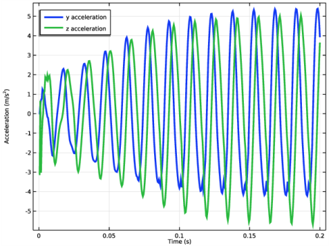نموداری از اجزای y و z  شتاب مجله در شکل 5 نشان داده شده است . شتاب در زمان t  = 0.1 ثانیه به یک مقدار ثابت می رسد.