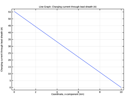 برای این نمودار، هنجار چگالی جریان ec.normJ را در سطح مقطع غلاف سربی ضرب کرده اید تا جریان کل در هر فاز در طول کابل به دست آید. جریان نزدیک به نقطه زمین باید 55 A باشد.