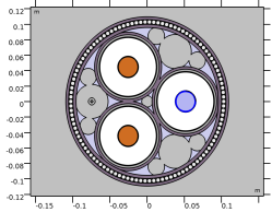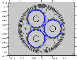 همانطور که می بینید، جریان در هادی های اصلی همگن نیست. یک اثر پوستی و مجاورتی با چگالی جریان قوی تر در نزدیکی مرکز کابل وجود دارد. ما در اینجا هادی های جامد را مدل سازی کرده ایم (به غیر از عبارت تصحیح؛ Ncon ).