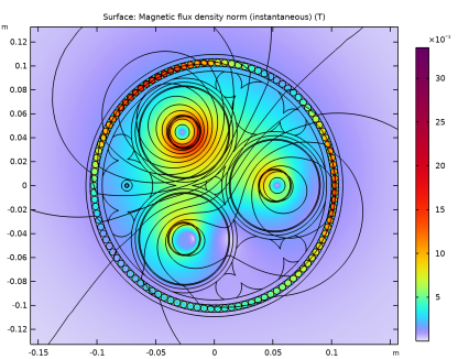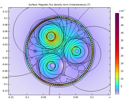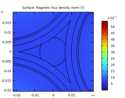 استفاده می شود که A را در جهت سطح نرمال محدود می کند. بنابراین، B عمود بر سطح نرمال خواهد بود. خطوط شار مغناطیسی در امتداد سطح جریان خواهند داشت. این به عنوان یک وضعیت عایق مغناطیسی (در قیاس با عایق الکتریکی یا حرارتی) شناخته می شود. از آنجایی که سطح نرمال یک مرز در یک مدل دوبعدی درون صفحه است و از آنجایی که پتانسیل بردار مغناطیسی فقط خارج از صفحه انتخاب شده است، در واقع مقدار A در تمام مرزهای بیرونی صفر است. این یک مجموعه کامل از معادلات و در نتیجه یک راه حل منحصر به فرد را به شما می دهد.