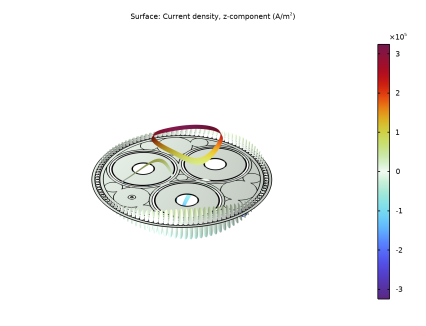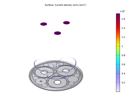با فعال بودن تنظیم گروه کویل ، COMSOL دامنههای انتخاب شده را نمونههای مختلفی از یک موجودیت در نظر میگیرد که چندین بار از صفحه دوبعدی عبور میکنند. در نتیجه، دامنه ها را به صورت الکتریکی در یک سری قرار می دهد (به بخش در مورد دامنه های سیم پیچ مراجعه کنید ). علاوه بر این، شما ولتاژ تحریک را روی 0 [V] تنظیم کرده اید ، که به طور موثر گروه سیم پیچ را به صورت متقاطع ایجاد می کند. اکنون، تا زمانی که جریان کل در همه حوزه های انتخاب شده یکسان باشد، جریان ها ممکن است آزادانه جریان داشته باشند.