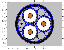 در این مدل، گرما از تلفات الکترومغناطیسی حاصل می شود. برای فازها و صفحات (مس و سرب)، تلفات هیسترزیس مغناطیسی و دی الکتریک نادیده گرفته شده است. چیزی که وارد معادله گرما می شود فقط تلفات مقاومتی است (این به عنوان گرمایش ژول شناخته می شود ):