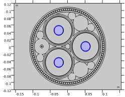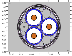 در نهایت، مقاومت فاز و اندوکتانس فاز در هر کیلومتر به ترتیب 59 m Ω و 0.43 mH ارزیابی میشوند . در مقایسه با پیکربندی ساده 2 بعدی در دمای اتاق، مقاومت حدود 13٪ افزایش یافته است (خواص القایی کمابیش ثابت می ماند).