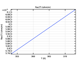 برای روشن بودن، این مقاومت AC وابسته به دما نیست که از ضرایب ارائه شده توسط استاندارد IEC بدست می آید. این بر اساس مقاومت 90 درجه سانتیگراد DC است که از عبارت مقاومت خطی که قبلاً استفاده کردیم به دست آمده است (به بخش رویکرد مدلسازی مراجعه کنید ). ضریب 1.39 نسبت η است ، همانطور که قبلاً بحث شد. برای سادگی، η مستقل از دما فرض می شود. شما می توانید این را خطی سازی Rac ( T ) در حدود 90 درجه سانتیگراد در نظر بگیرید.
