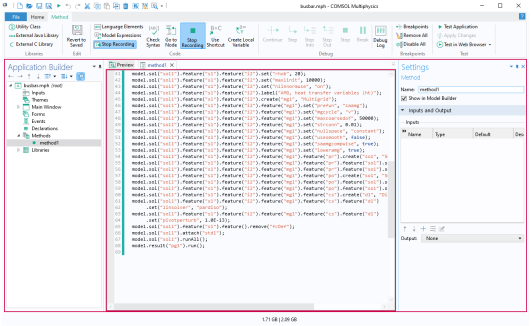 از ابزارهای ضبط کد برای یادگیری سریع نحوه تعامل با شی مدل یا شی برنامه استفاده کنید. کد تولید شده خودکار نام ویژگی ها، پارامترها و متغیرها را به شما نشان می دهد. برای تخصیص مقادیر پارامترهای جدید در ویژگی های مدل، از رشته ها و تبدیل های رشته-اعداد استفاده کنید. با استفاده از Data Access در حین ضبط، میتوانید برای مثال، یک مقدار پارامتر را با استفاده از get استخراج کنید، مقدار آن را در یک متد پردازش کنید و با استفاده از set آن را در شی مدل ذخیره کنید . برای اطلاعات بیشتر در مورد دسترسی به داده ، به مقدمه Application Builder مراجعه کنید.