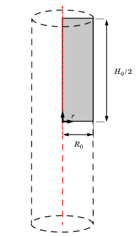 این مشکل تقارن محوری دوبعدی و همچنین تقارن بازتابی را در مقطع میانی میله نشان میدهد. بنابراین می توان هندسه مدل را به یک مستطیل با عرضی برابر با شعاع میله و ارتفاعی معادل نیمی از طول میله کاهش داد، شکل 1 را ببینید .