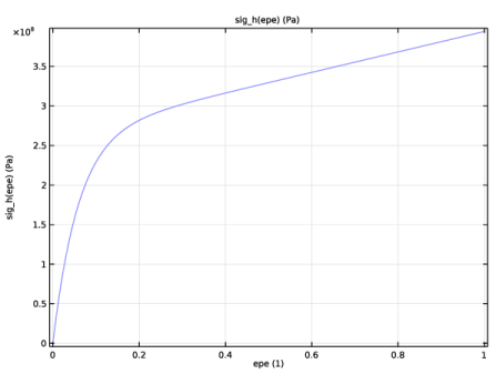 سخت شدن تعریف شده توسط کاربر σh ( εpe ) که در شکل 2 نشان داده شده است ، تنش صفر را برای عدم وجود کرنش پلاستیک فرض می کند . در رابطه 1 ، تنش تسلیم به عنوان مجموع تنش تسلیم اولیه σ ys0 و تابع سخت شدن σh ( εpe ) تعریف می شود. تابع سخت شدن در گره Materials توسط یک تابع تحلیلی تعریف می شود.
