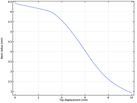 شکل 5 تغییر شعاع را به عنوان تابعی از کشیدگی نشان می دهد. در ابتدا شعاع به صورت خطی با جابجایی اعمال شده کاهش می یابد. پس از جابجایی محوری 3 میلی متر، کاهش شعاعی به طور قابل توجهی افزایش می یابد و نمونه گردن شدن را تجربه می کند. مورد مشابهی توسط Simo و Hughes ( مراجعه 1 ) و همچنین توسط Elguedj و Hughes ( مرجع 2 ) مورد بررسی قرار گرفته است. جدول 2 نتایج آنها را با نتیجه تحلیل فعلی مقایسه می کند. شعاع شعاعی گردن محاسبه شده با نتایج موجود در ادبیات مطابقت خوبی دارد.