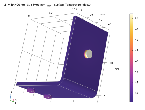 هدف از شبیه سازی شما محاسبه دقیق میزان گرم شدن شینه و مطالعه تاثیر دو پارامتر طراحی، عرض و طول دستگاه، بر روی این پدیده است. با انجام یک جارو پارامتریک در محدوده ای از این پارامترها می توانید تعیین کنید که کدام ترکیب از پارامترهای عرض و طول منجر به افزایش دما کمتر از 30 درجه بالاتر از دمای محیط می شود.
