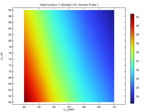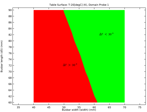 با ترسیم میانگین افزایش دما بالاتر از دمای محیط در برابر پارامترهای عرض و طول، و قالب بندی نمودار مطابق شکل 5 ، به راحتی می توانیم تعیین کنیم که کدام ترکیبات عرض و طول منجر به یک مقدار قابل قبول افزایش دما می شود.