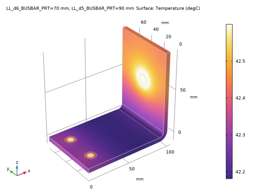این مثال یک شینه طراحی شده برای هدایت جریان مستقیم از یک ترانسفورماتور به یک دستگاه الکتریکی را تجزیه و تحلیل می کند. شکل 1 را ببینید . جریان عبوری در شینه به دلیل تلفات مقاومتی گرما تولید می کند، پدیده ای که به آن گرمایش ژول می گویند. اثر گرمایش ژول توسط قوانین بقای جریان الکتریکی و انرژی توصیف می شود. پس از حل شدن، دو قانون بقای به ترتیب دما و میدان الکتریکی را نشان می دهند.