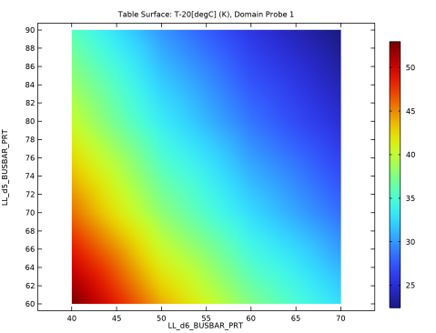 با ترسیم میانگین افزایش دما بالاتر از دمای محیط در برابر پارامترهای عرض و طول، و قالب بندی نمودار مطابق شکل 5 ، به راحتی می توانیم تعیین کنیم که کدام ترکیبات عرض و طول منجر به یک مقدار قابل قبول افزایش دما می شود.