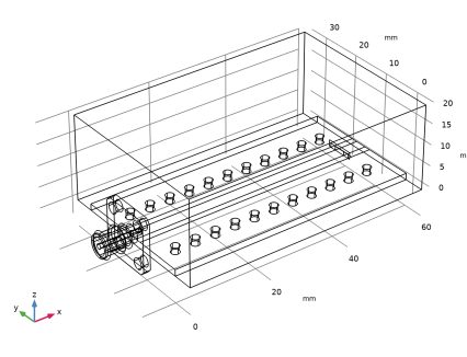 دامنه بین هادی داخلی و خارجی کانکتور SMA با PTFE پر شده است و تمام قطعات فلزی از جمله کانکتور SMA، CPW، vias متالیزه و پل هوا به عنوان رسانای الکتریکی کامل مدلسازی شدهاند. کل حوزه مدلسازی با مرزهای پراکنده محدود میشود که یک فضای باز به جز صفحه زمین را نشان میدهد.