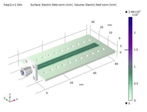 هدف از این مثال نشان دادن چگونگی تحریک یک موجبر همسطح زمین شده با سیگنال یک کابل کواکسیال از طریق یک اتصال دهنده SMA است. این مدل همچنین یک پایانه غیرفعال 50 Ω را نشان می دهد که با و بدون پل هوایی ساخته شده است.