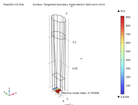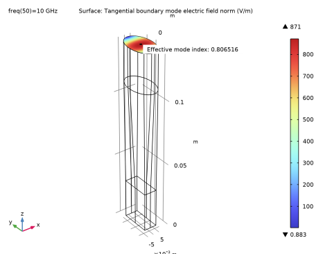 با تحریک مقرر در پورت مستطیلی و شکل‌های حالت تعیین شده به صورت عددی به عنوان شرایط مرزی، معادله زیر برای بردار میدان الکتریکی E درون آداپتور موجبر حل می‌شود: