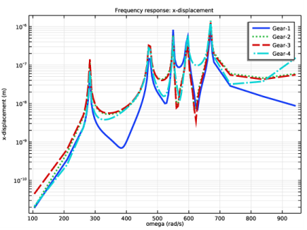 شکل 4: پاسخ فرکانسی جابجایی جهت x تمام چرخ دنده ها.