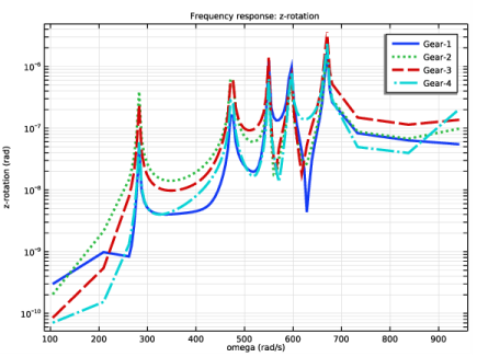 شکل 5: پاسخ فرکانسی چرخش جهت z تمام چرخ دنده ها.