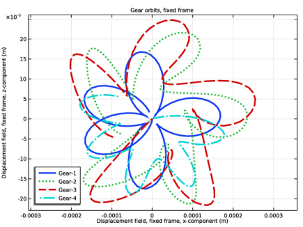 شکل 8: مدارهای مرکز چرخ دنده در چارچوب مرجع ثابت.
