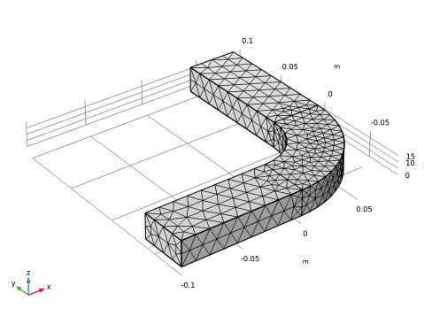 این مثال نحوه ایجاد مدلی را نشان می دهد که میدان های الکترومغناطیسی و ویژگی های انتقال یک خم 90 درجه را برای یک شعاع معین محاسبه می کند. این نوع خمش باعث تغییر جهت اجزای میدان H می شود و جهت میدان E را بدون تغییر می گذارد. بنابراین موجبر را خم H می نامند . طراحی H-bend مورد استفاده در این مثال به خوبی در کاربردهای دنیای واقعی به اثبات رسیده است و شما می توانید خم های موجبر مشابه را به صورت آنلاین از تعدادی تولید کننده خریداری کنید. این خم خاص در حالت ایده آل دیوارهایی با رسانایی کامل عملکرد بهینه دارد.