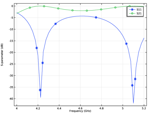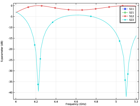 1 | در پنجره Model Builder ، گره Results>S-parameter (emw) را گسترش دهید ، سپس روی Global 1 کلیک کنید . |
