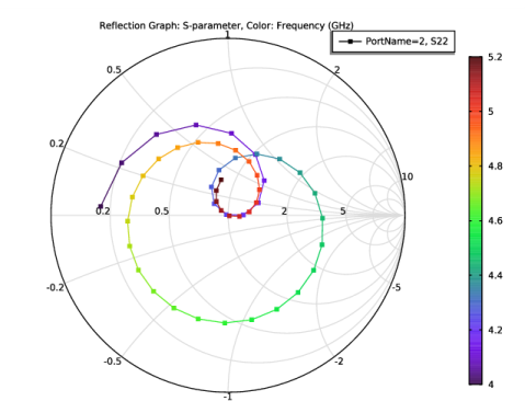 1 | در پنجره Model Builder ، گره Smith Plot (emw) 1 را گسترش دهید ، سپس روی Reflection Graph 1 کلیک کنید . |