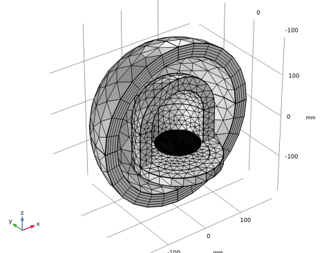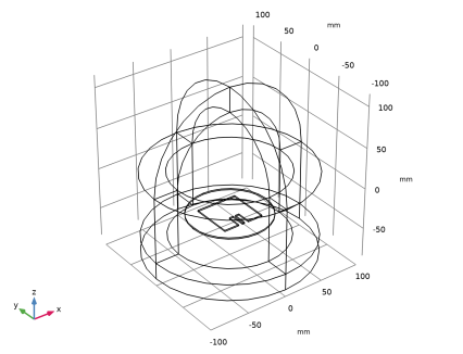 کل ساختار آنتن در یک کره با خواص خلاء مدل سازی شده است. این کره توسط یک دامنه لایه کاملاً منطبق (PML) کوتاه شده است که به عنوان یک مرز برای فضای آزاد عمل می کند. فاصله آنتن تا PML متغیری است که نیاز به مطالعه دارد. PML نباید در ناحیه میدان نزدیک واکنشی ساختار آنتن باشد. با این حال، اندازه میدان نزدیک واکنشی کاملاً قابل تعریف نیست، بنابراین فاصله آنتن تا PML باید برای هر مدل مطالعه شود. ضخامت PML به خودی خود حیاتی نیست و می تواند تقریباً یک دهم قطر کره هوا باشد.