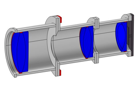 آموزش آنالیز Lens STOP Petzval به عنوان پایه این مدل استفاده می شود. در آن مثال، یک عدسی پتزوال با یک هندسه بشکه ساده مدلسازی شده است ( شکل 1 را ببینید ) و در معرض دمای یکنواخت 25- درجه سانتیگراد قرار می گیرد . در این آموزش یک Sweep پارامتریک در محدوده دما انجام می شود. این فرض باقی می ماند که مجموعه لنز همدما است. در هر دما تأثیر بر کیفیت تصویر و موقعیت فوکوس محاسبه می شود.